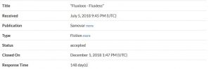 Samovar is mijn eerste pro-publicatie in de US. Het verhaal Fluxloos/Fluxless is inmiddels te lezen op de website van Samovar. Voor deze publicatie heb ik geheel tegen mijn natuur in geduld betracht en het proces zich laten voltrekken, met als resultaat een schitterende publicatie met een aanzienlijk bereik.